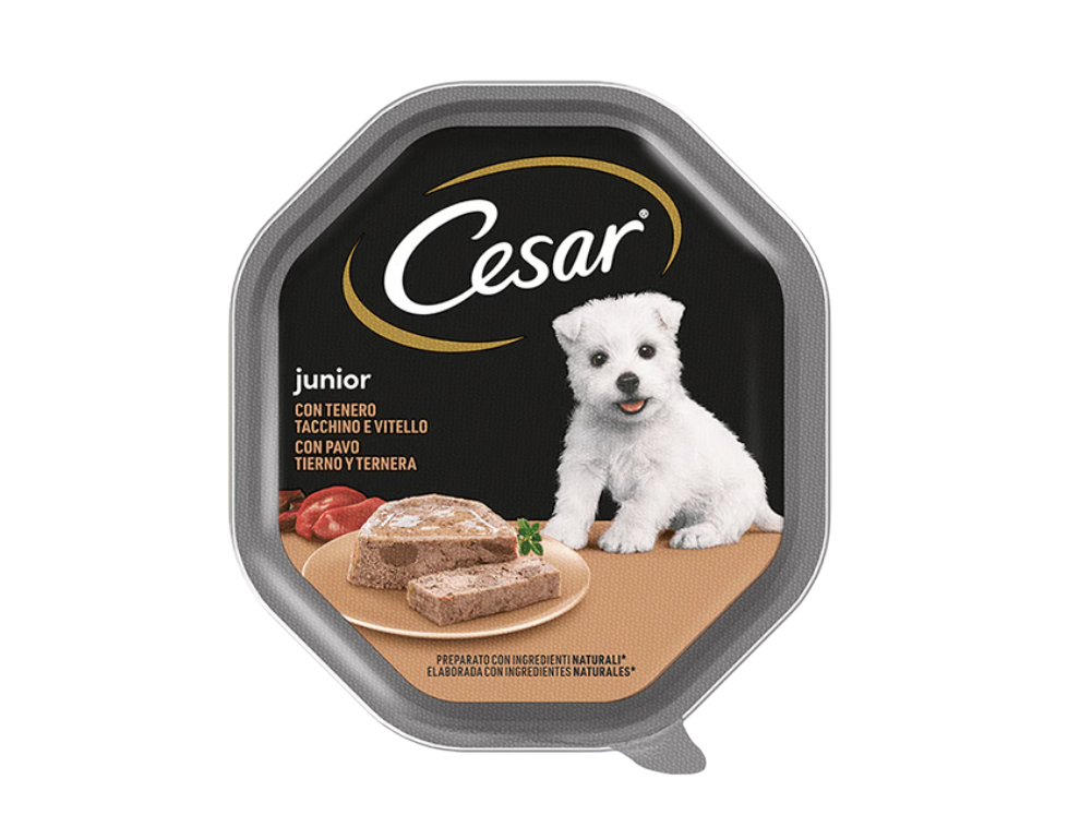 Begleiten Sie Ihren treuen Freund durch die reiferen Lebensphasen mit Cesar Junior-Rezepten , die auf die Ernährungsbedürfnisse junger Hunde abgestimmt sind. Jede 150-g-Einzelportionsschale enthält natürliche Zutaten und ausgewähltes Fleisch für eine schmackhafte, gesunde und ausgewogene Mahlzeit.