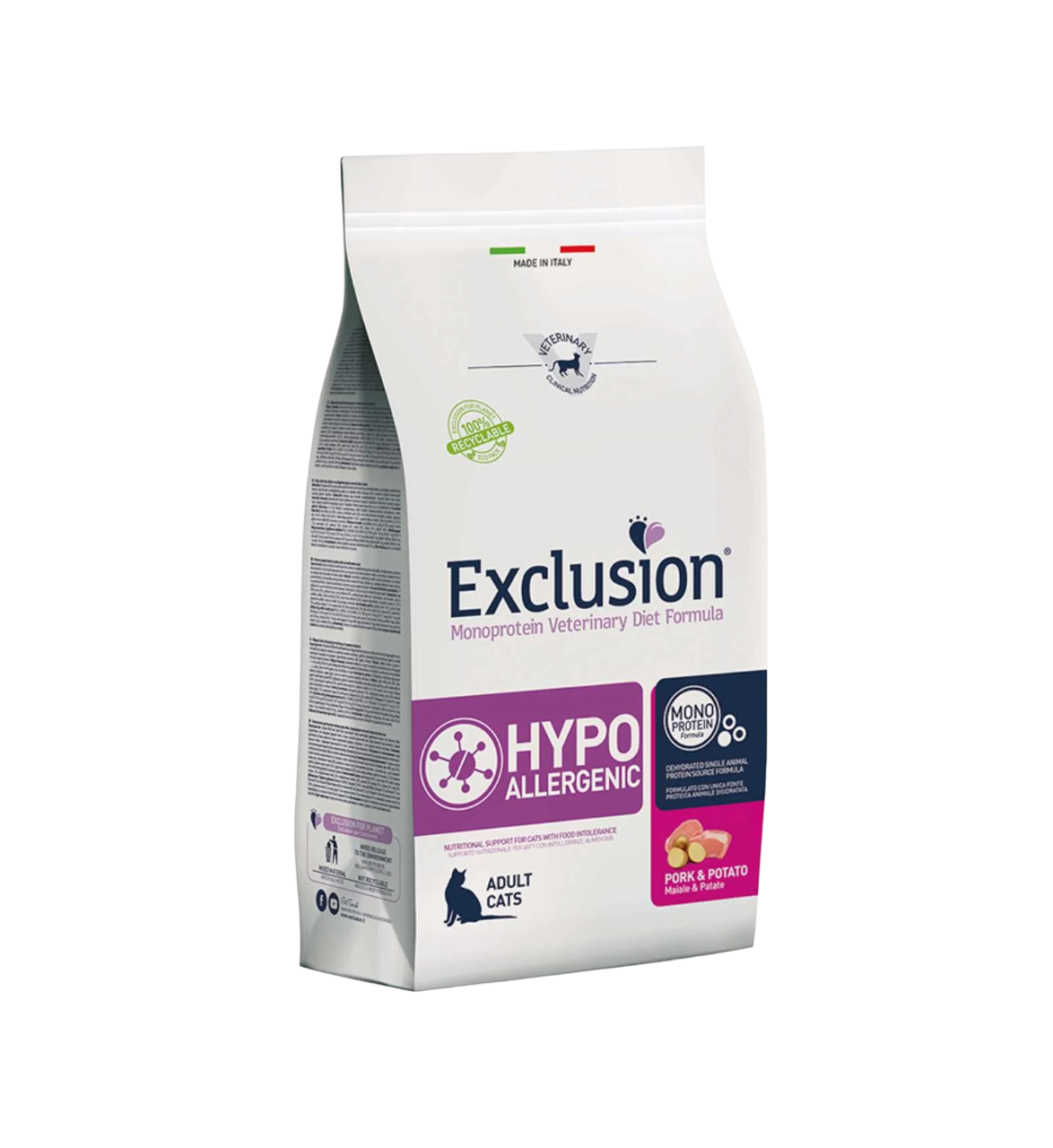 L’alimento secco Exclusion Veterinary Diet Hypoallergenic è una dieta monoproteica completa formulata per gatti adulti con intolleranze o allergie alimentari.