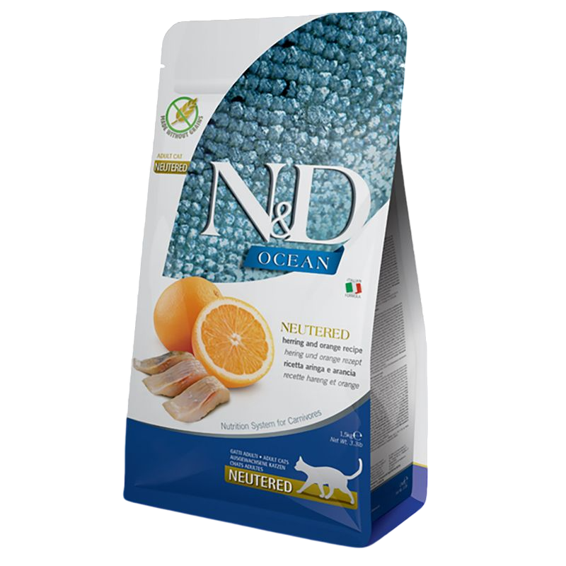 Farmina N&D Ocean Neutered Aringa e Arancia è un alimento secco completo e bilanciato per gatti adulti sterilizzati. Realizzato con ingredienti naturali di altissima qualità, aiuta a mantenere il peso forma e a supportare il benessere generale del gatto dopo la sterilizzazione.