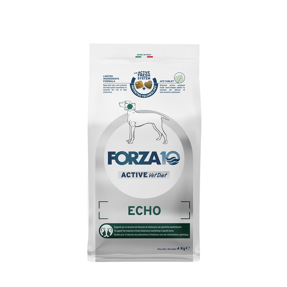 Forza10 Echo è indicato come supporto nutrizionale complementare ai trattamenti veterinari, contribuendo a migliorare la qualità della vita del cane grazie a una formulazione mirata e ben tollerata.