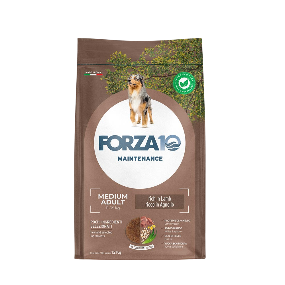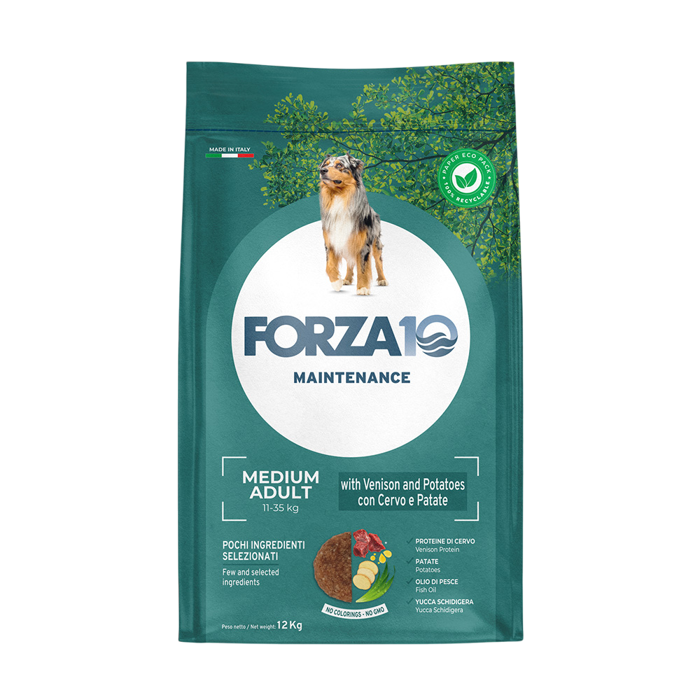 Forza10 Maintenance Medium Adult è una linea completa di alimenti secchi di alta qualità, pensata per cani adulti di taglia media (11–35 kg). Formulata con pochi ingredienti selezionati, è ideale per garantire una nutrizione naturale, altamente digeribile e bilanciata ogni giorno.