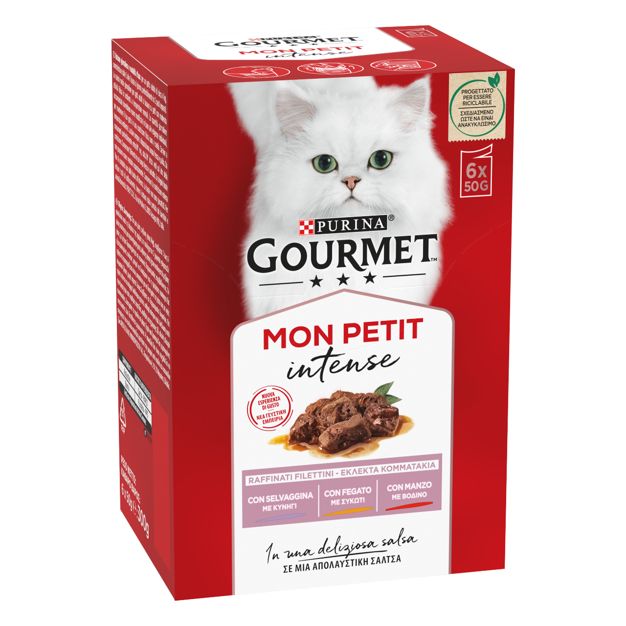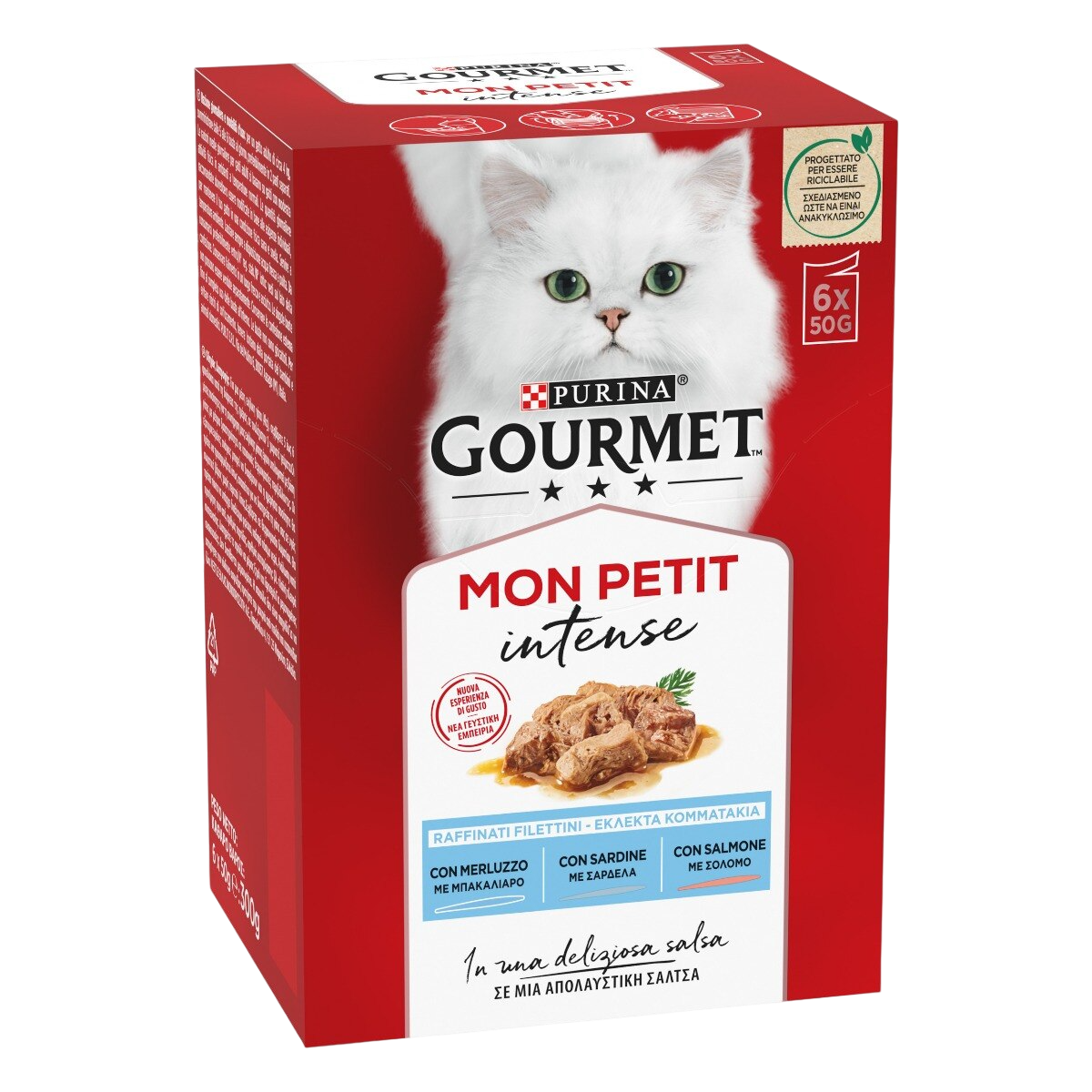 Gourmet Mon Petit Intense 50 g è un alimento umido completo e bilanciato per gatti adulti, preparato con filettini raffinati e ingredienti selezionati.