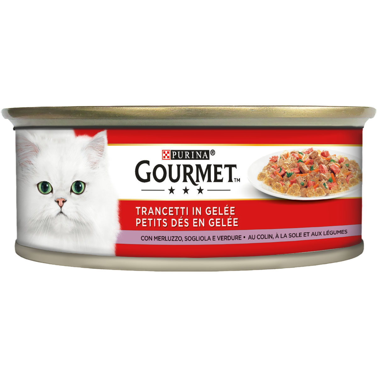 Gourmet Red Trancetti 195 g è un alimento umido completo e bilanciato per gatti adulti, preparato con ingredienti selezionati e presentato in deliziosi bocconcini immersi in salsa.