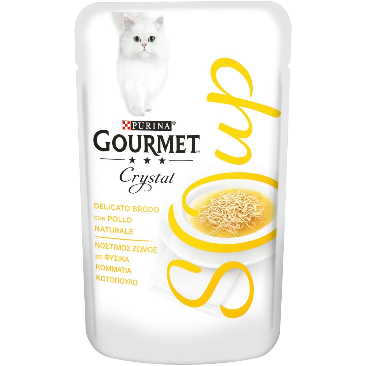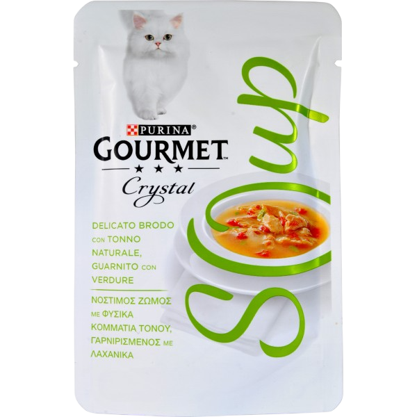 Scopri Gourmet Soup / Crystal, l’alimento complementare per gatti raffinato e irresistibile. Preparato con ingredienti naturali selezionati, propone un delicato brodo che racchiude morbidi pezzetti di carne o pesce, per un’esperienza di gusto unica.