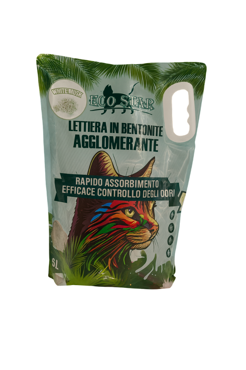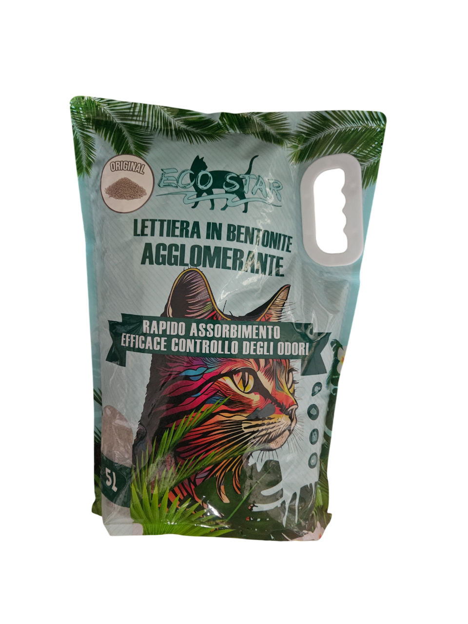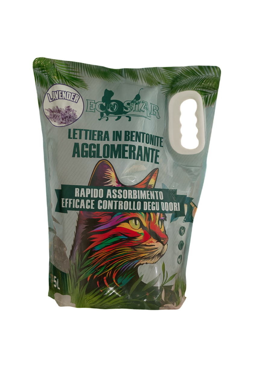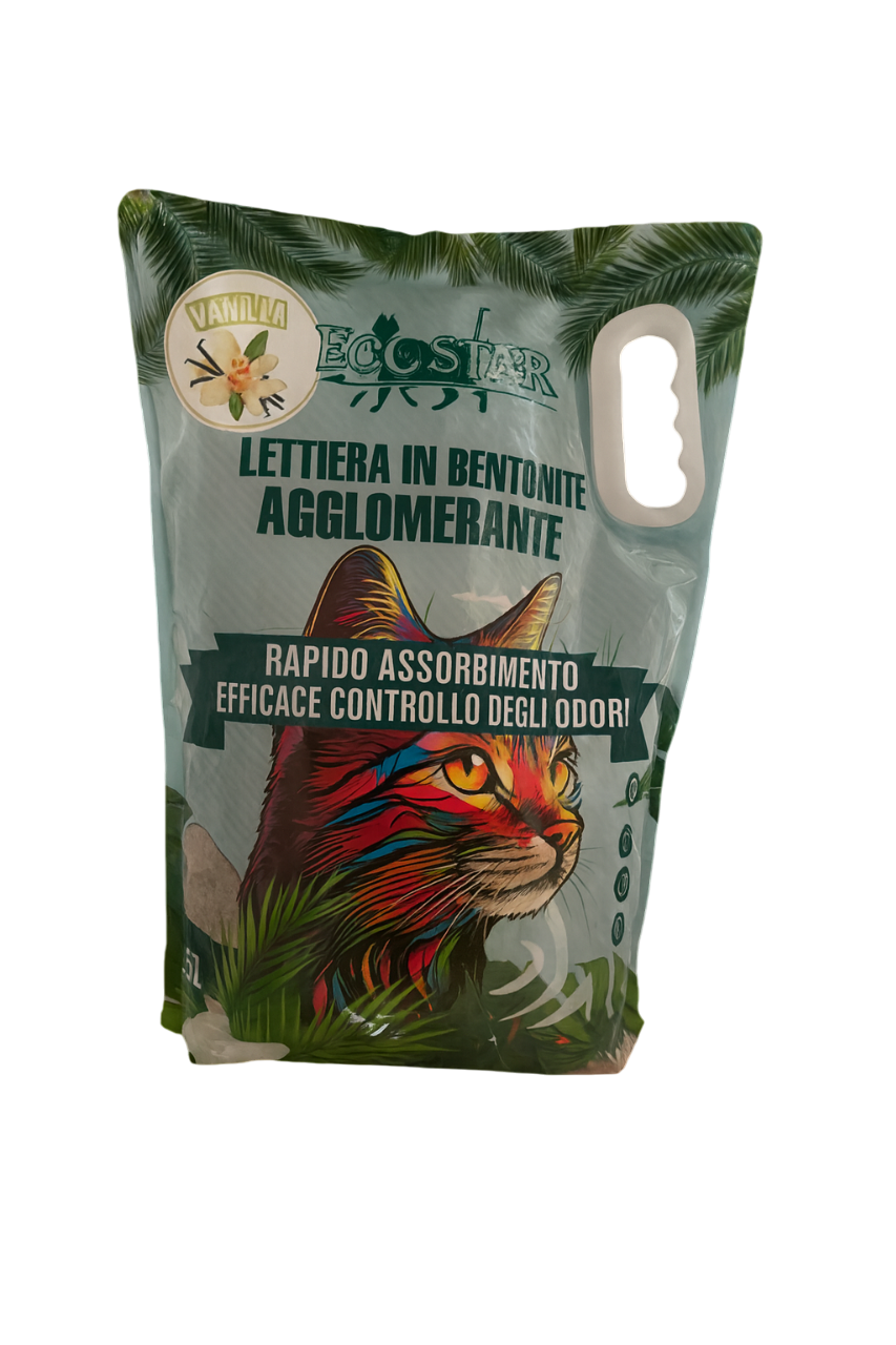 La linea di lettiere Eco Star in bentonite agglomerante garantisce massimo assorbimento e controllo degli odori per il benessere del tuo gatto. Disponibile in quattro profumazioni: Original, Lavanda, Muschio Bianco e Vaniglia, combina praticità, igiene e freschezza naturale. La sua formula agglomerante facilita la pulizia quotidiana, riducendo sprechi e cattivi odori. Ideale per gatti di ogni età e per chi desidera un ambiente sempre pulito e profumato.