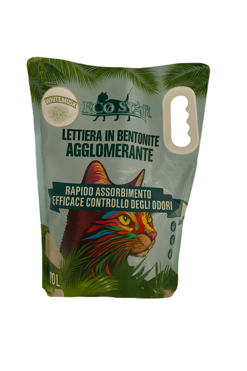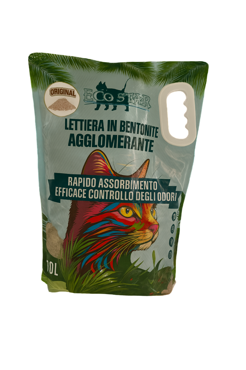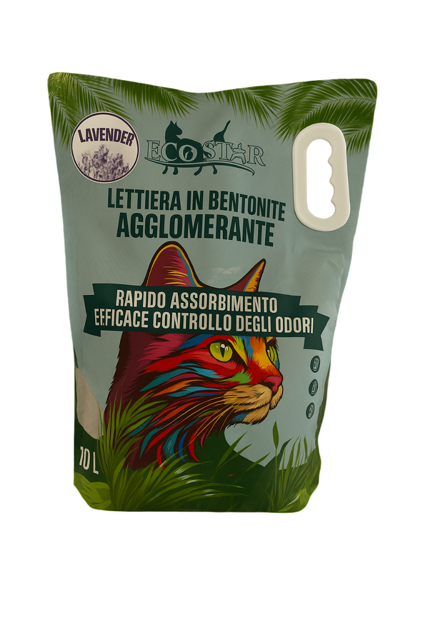 La linea di lettiere Eco Star in bentonite agglomerante garantisce massimo assorbimento e controllo degli odori per il benessere del tuo gatto. Disponibile in quattro profumazioni: Original, Lavanda, Muschio Bianco e Vaniglia, combina praticità, igiene e freschezza naturale. La sua formula agglomerante facilita la pulizia quotidiana, riducendo sprechi e cattivi odori. Ideale per gatti di ogni età e per chi desidera un ambiente sempre pulito e profumato.