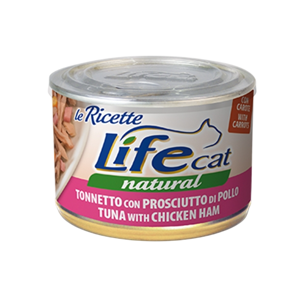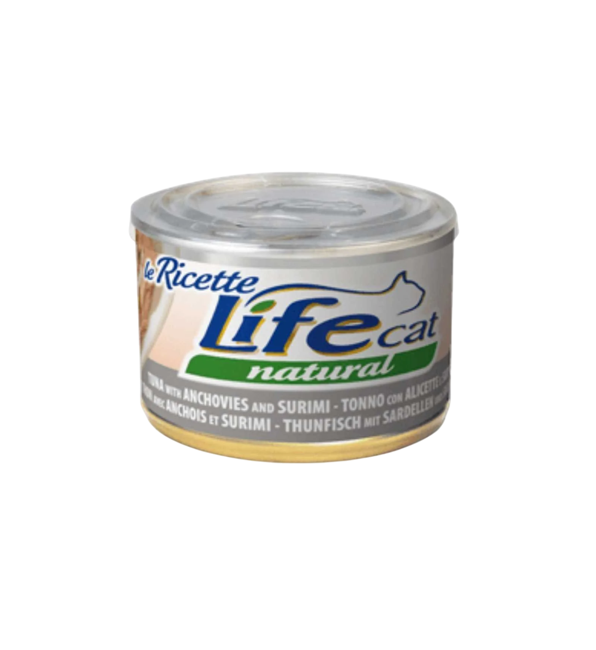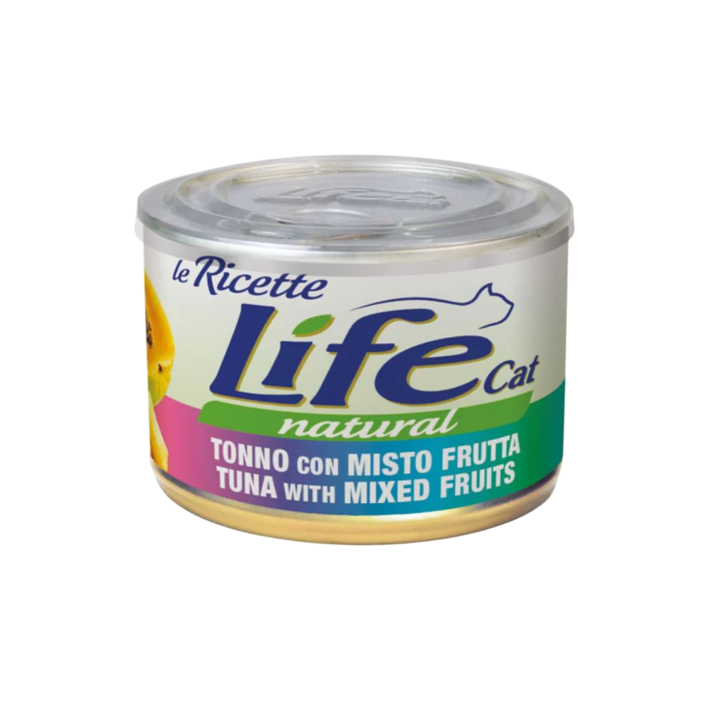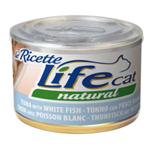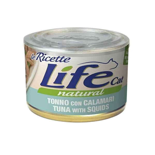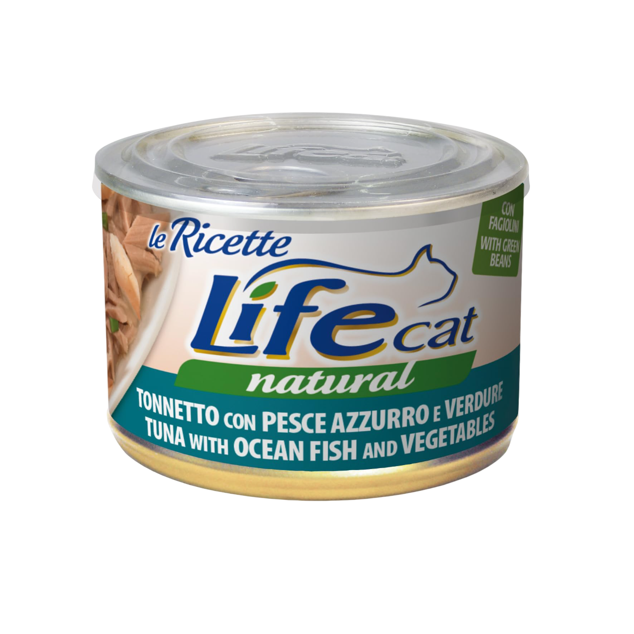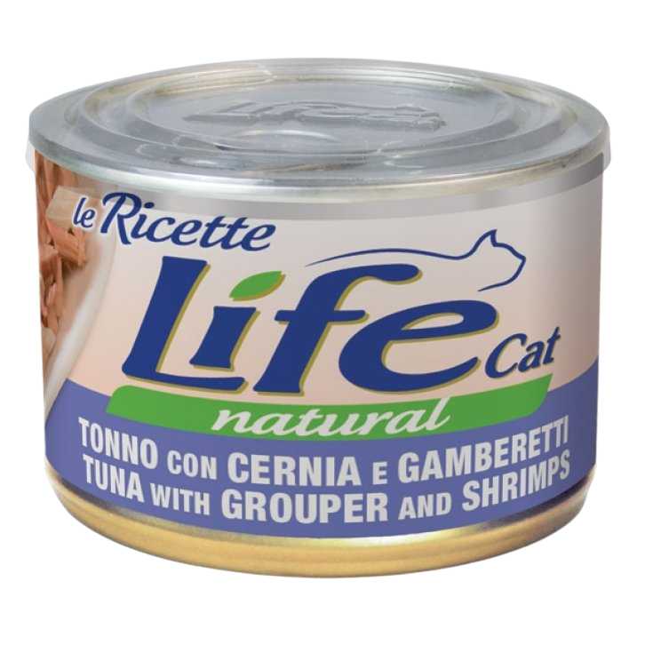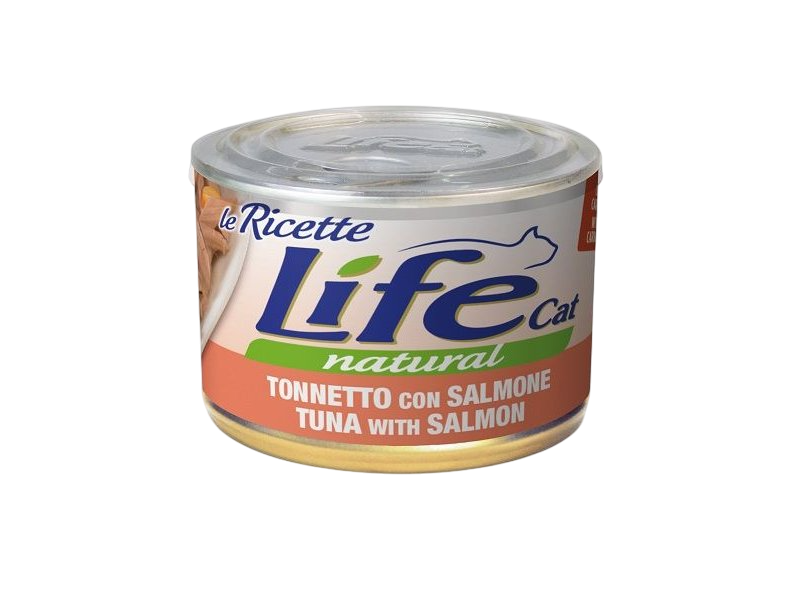 Umido naturale LifeCat – 12/24 lattine da 150g. Alimento completo e genuino per gatti adulti, preparato con carne o pesce selezionato.