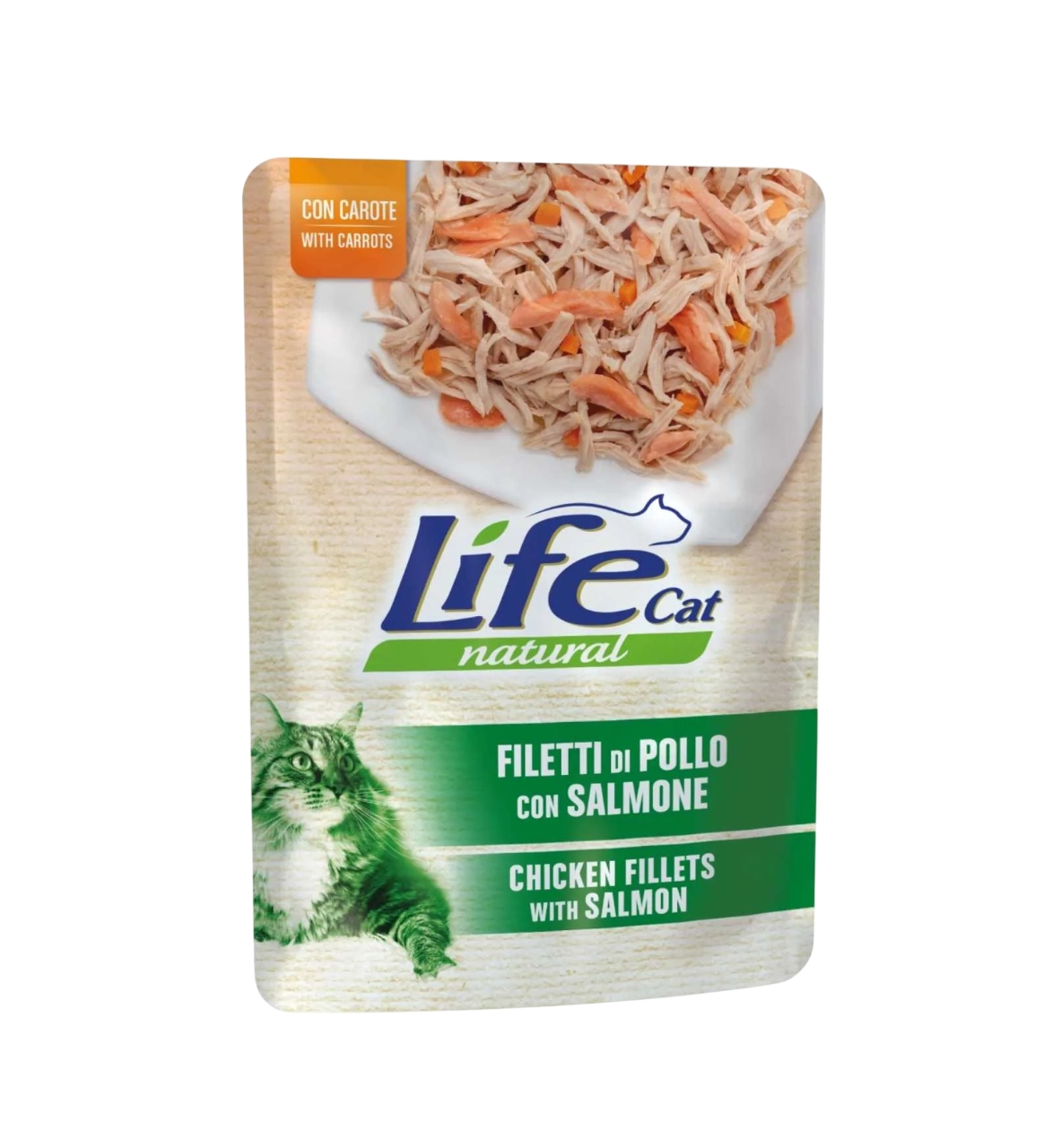 Le buste LifeCat 70g x 30 pz sono la scelta ideale per chi cerca un'alimentazione quotidiana naturale, gustosa e bilanciata per il proprio gatto adulto.