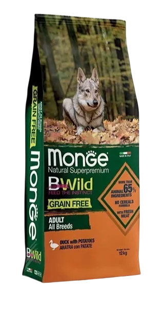 Le crocchette Monge Natural Superpremium BWild Grain Free Adult All Breeds 12 kg sono un alimento completo e bilanciato per cani adulti di tutte le taglie, formulate per offrire una nutrizione ispirata alla natura e all’istinto selvatico del cane.