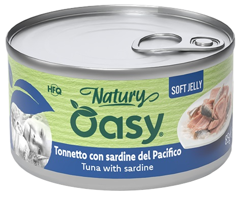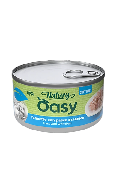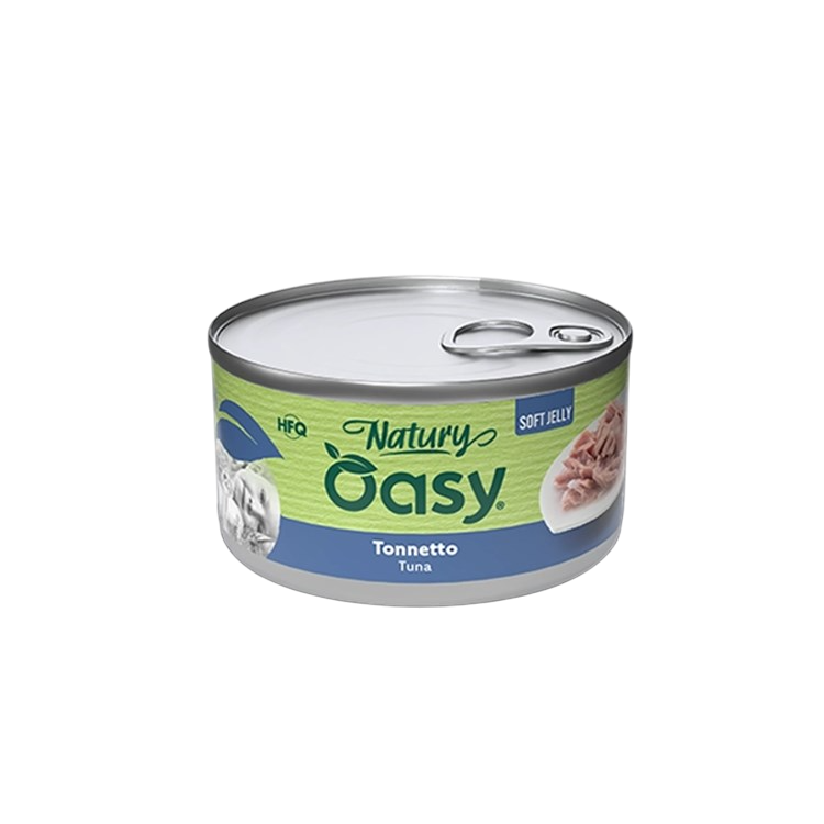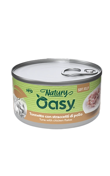 Oasy Cat Natural Range è una linea di alimenti umidi di alta qualità per gatti adulti, preparata con ingredienti naturali e carni o pesci freschi in morbida gelatina (Soft Jelly).