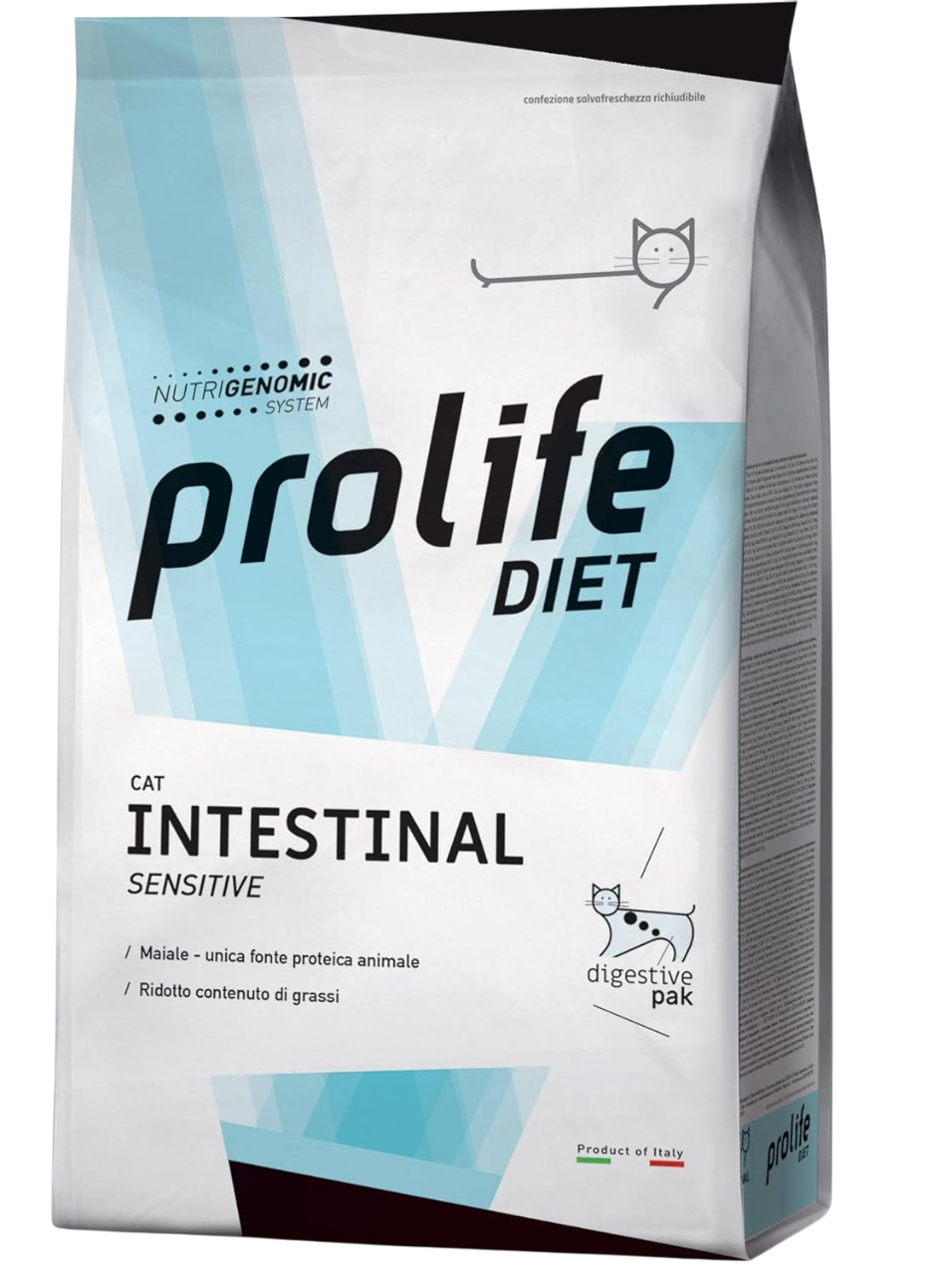Le crocchette Prolife Cat Diet Intestinal Sensitive sono un alimento dietetico completo per gatti adulti con disturbi dell’assorbimento intestinale o digestione delicata.