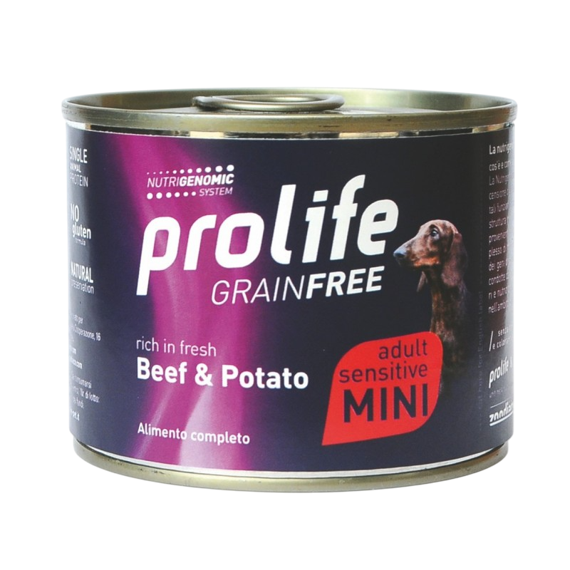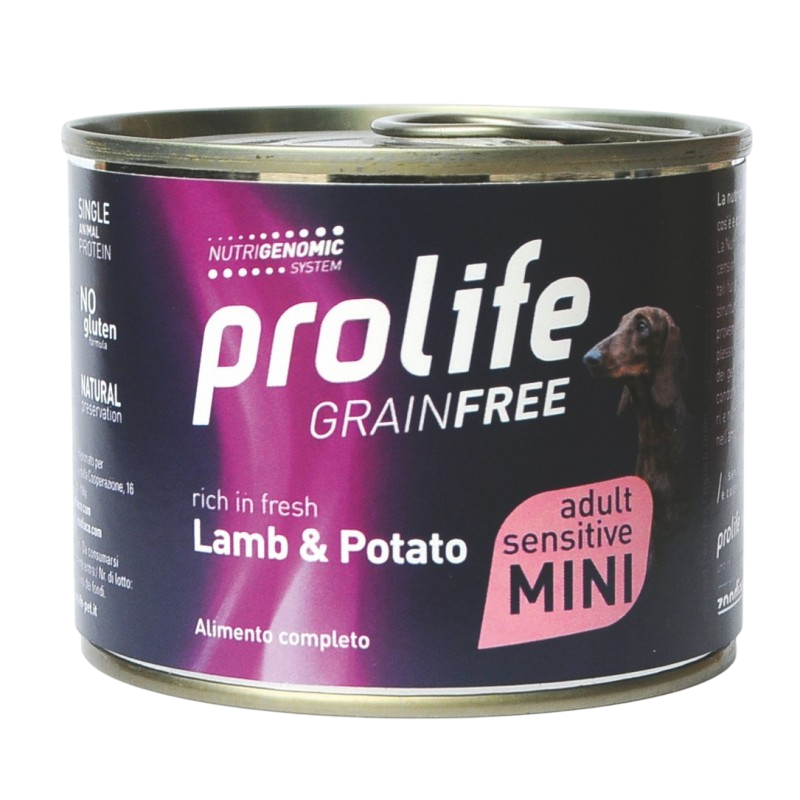 Le lattine Prolife Grain Free Adult Sensitive Mini 200 g offrono un’alimentazione completa e bilanciata per cani adulti di piccola taglia con sensibilità alimentari.