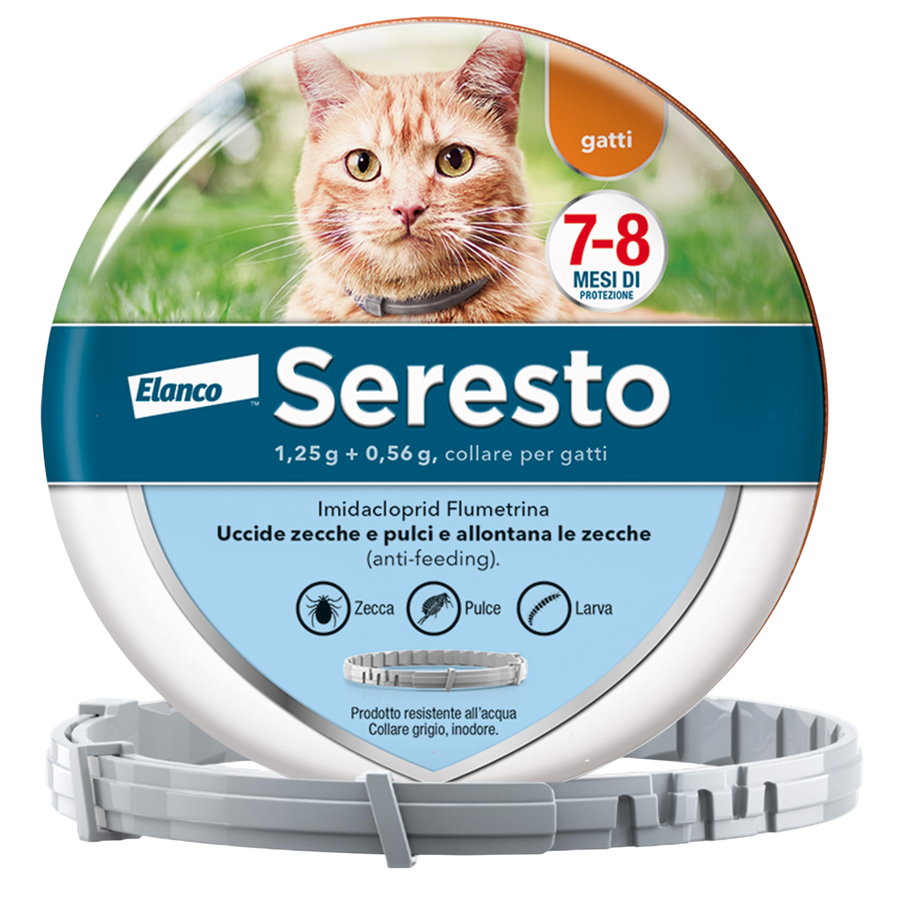Il collare antiparassitario Seresto per gatti protegge fino a 8 mesi contro pulci, zecche e larve. Grazie ai principi attivi Imidacloprid e Flumetrina, rilasciati gradualmente, offre una protezione costante e sicura. È resistente all’acqua, inodore e adatto a tutti i gatti, anche da appartamento.
